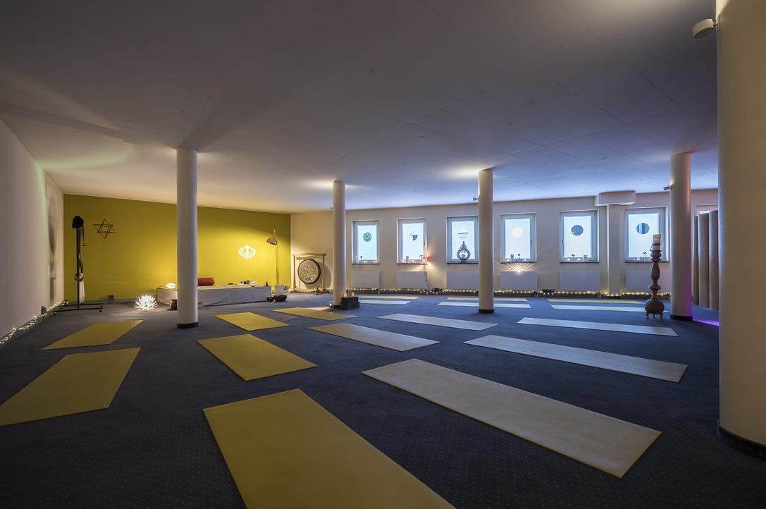Wir werden auf Stühlen und Kissen sitzen, als auch auf Matten liegen.